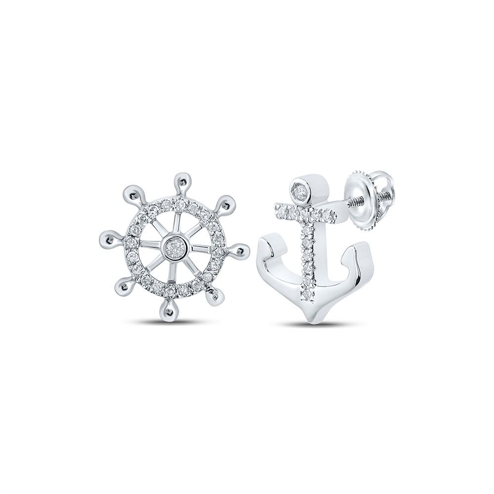 10kt White Gold Womens Round Diamond Anchor Wheel Stud Earrings 1/10 Cttw