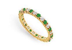 Lush-green emeralds alternate with brilliant-cut round diamonds in a 14K yellow gold prong-setting. This eternal circle symbolizes your never ending hope in life. This eternity band has a total gem weight (TGW) of 1.00 ct. Being a May birthstone; it makes a great gift for a May born.