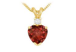A heart-shaped natural garnet is securely held in a luscious 14K yellow gold prong setting. Set atop a brilliant-cut diamond adds a touch of style. This gemstone pendant has a total weight (TGW) of 1.00ct and comes with a standard 16 14K yellow gold chain.