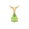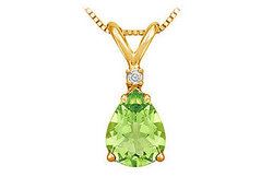 A pear-shaped natural peridot is securely held in a luscious 14K yellow gold prong setting. Set atop a brilliant-cut diamond adds a touch of style. This gemstone pendant has a total weight (TGW) of 1.00ct and comes with a standard 16 14K yellow gold chain.