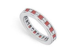 Creating a fine contrast of vibrant red and soothing white this vivacious eternity band is channel-set with alternating square rubies and princess-cut diamonds. Made in 18K white gold this eternity band has a total gem weight (TGW) of 2.00 carat. A perfect gift for any July born as Ruby is Julys birthstone.