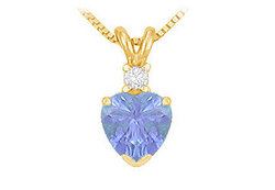 A heart-shaped natural tanzanite is securely held in a luscious 14K yellow gold prong setting. Set atop a brilliant-cut diamond adds a touch of style. This gemstone pendant has a total weight (TGW) of 1.00ct and comes with a standard 16 14K yellow gold chain.