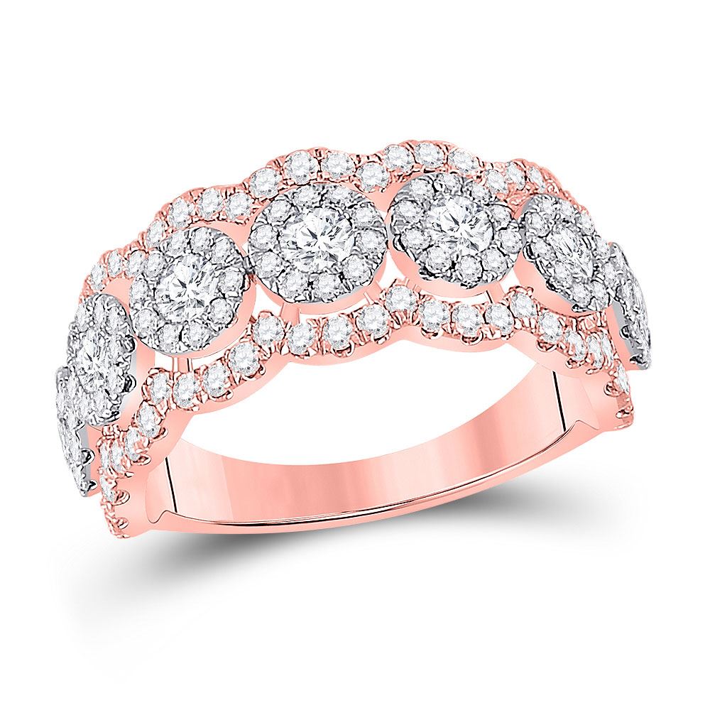 14kt Rose Gold Womens Round Diamond Anniversary Band Ring 1-1/2 Cttw