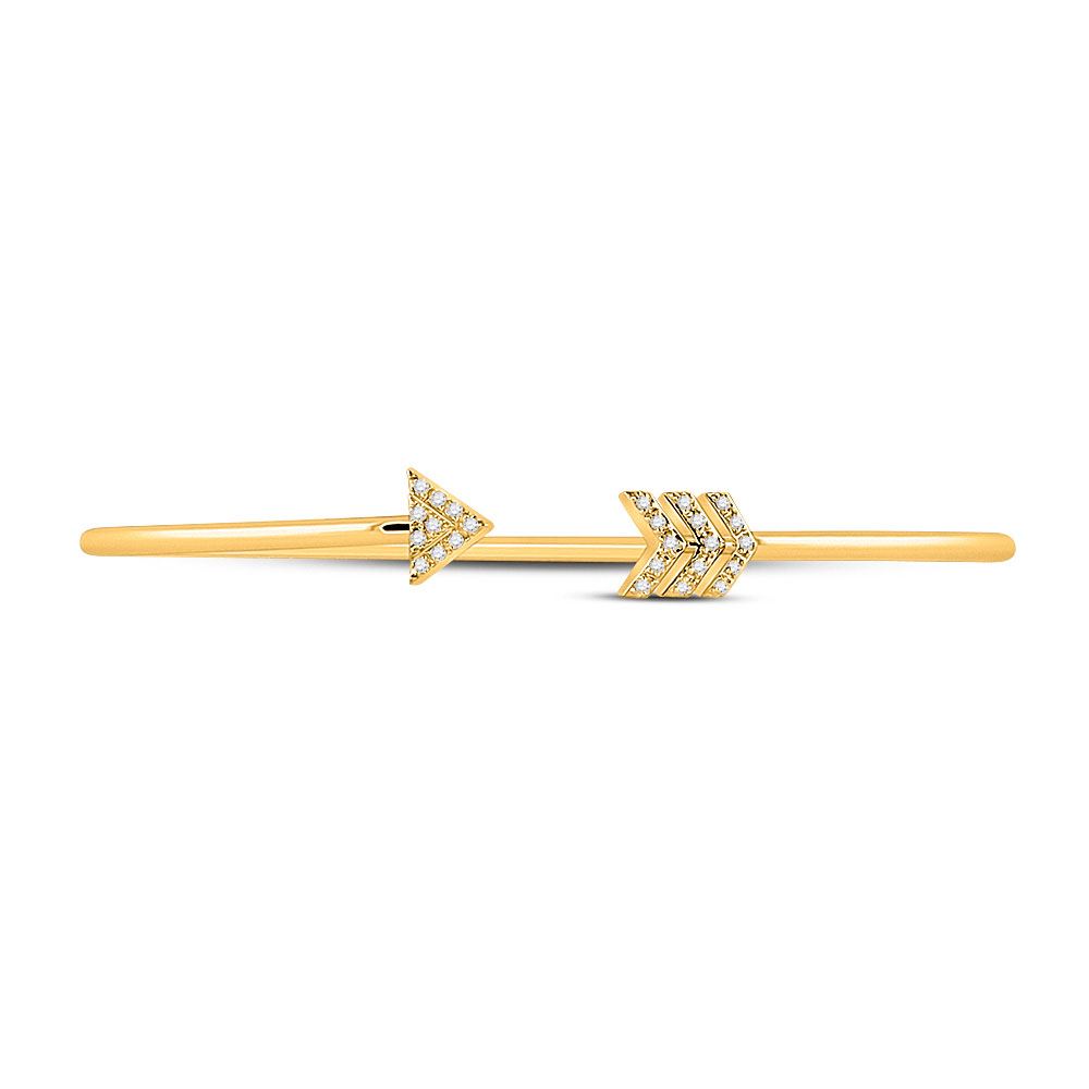 10kt Yellow Gold Womens Round Diamond Arrow Bangle Bracelet 1/10 Cttw