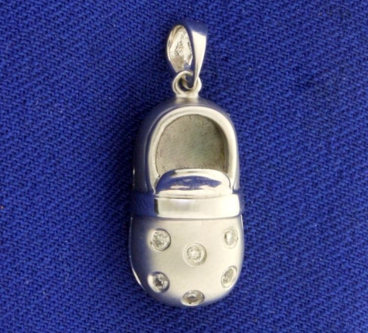 In 14k white gold. Containing six .01ct high quality diamonds, VS clarity/G color. 1" long with bale. 2.7g.