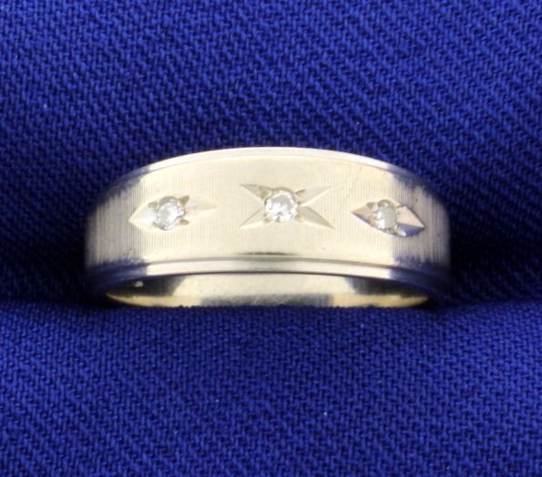 In 14K white gold, there are three high quality .02ct diamonds. Size 5 1/4 3.2g