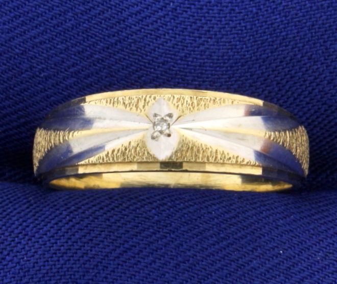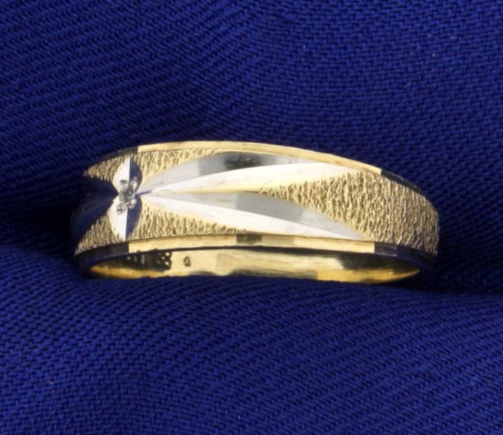 In 10k yellow and white gold, with .01ct high quality diamond. Size 9 1/4. 3.4g.