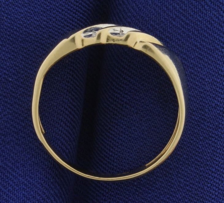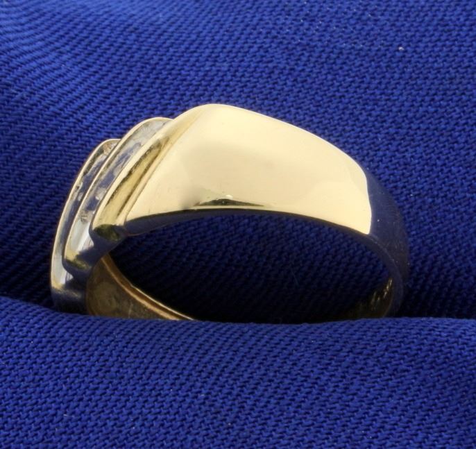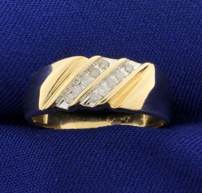 In 10k yellow and white gold. Containing ten high quality .01 ct diamonds, SI2 clarity/H color. Size 8 3/4 with a 4.5mm band. 3.2g.