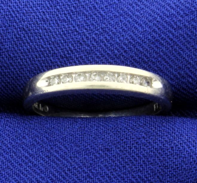 In 14K white gold it contains eight .02ct diamonds and is a size 7 1/2. 2.6g