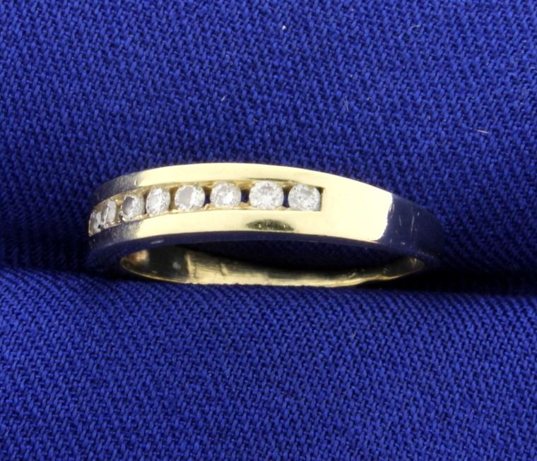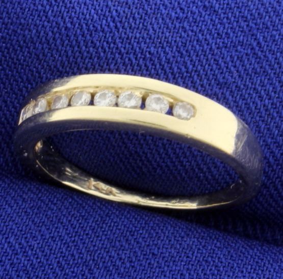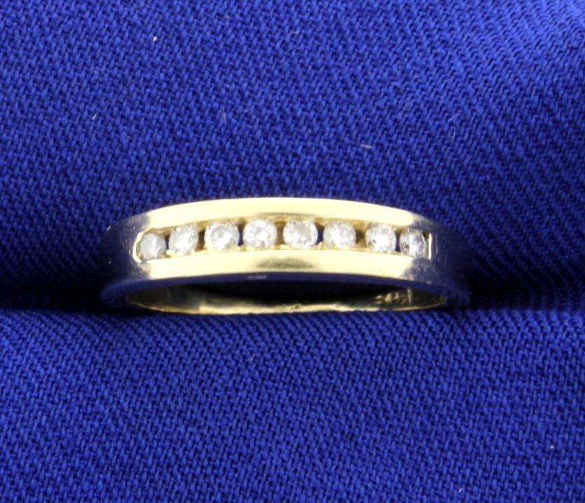 In 14K yellow gold, there are eight high quality .02ct round diamonds - SI clarity/H color. Size 5 3/4 2.4g