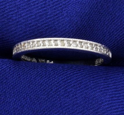 In 14K white gold, there are twenty three 1/2pt diamonds. Size 8 1/4 2.5g