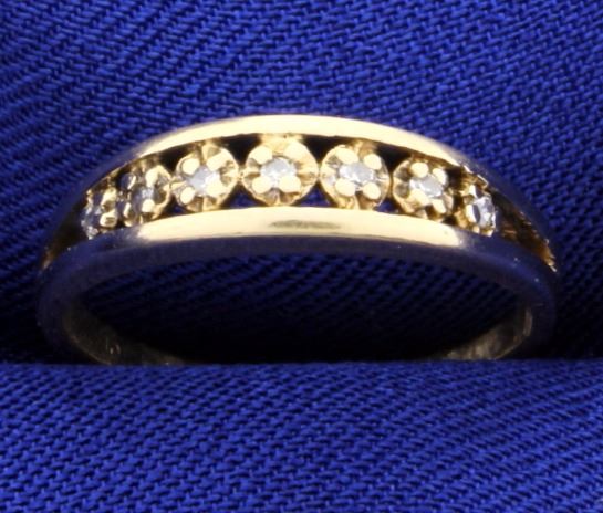 In 10K yellow gold, this ring contains seven 1/2pt diamonds. Size 6 3/4 2.1g