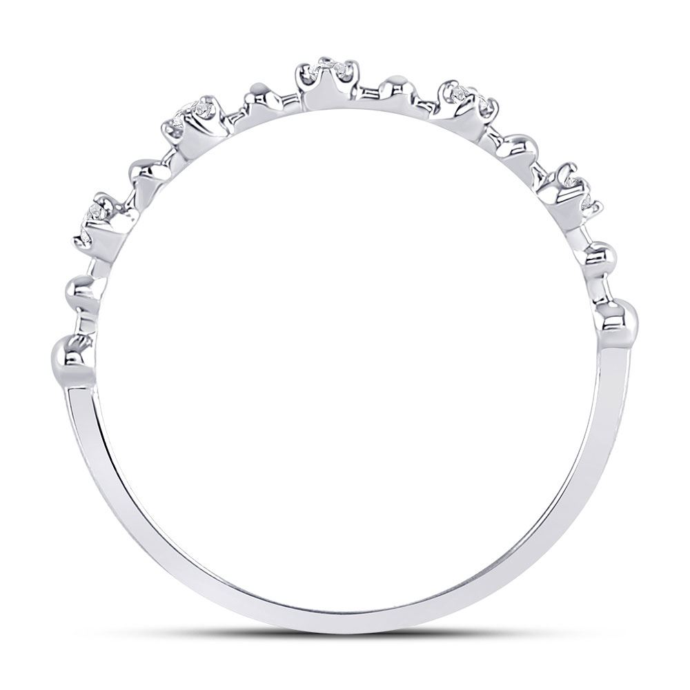 10kt White Gold Womens Round Diamond Bead Dot Stackable Ring 1/20 Cttw