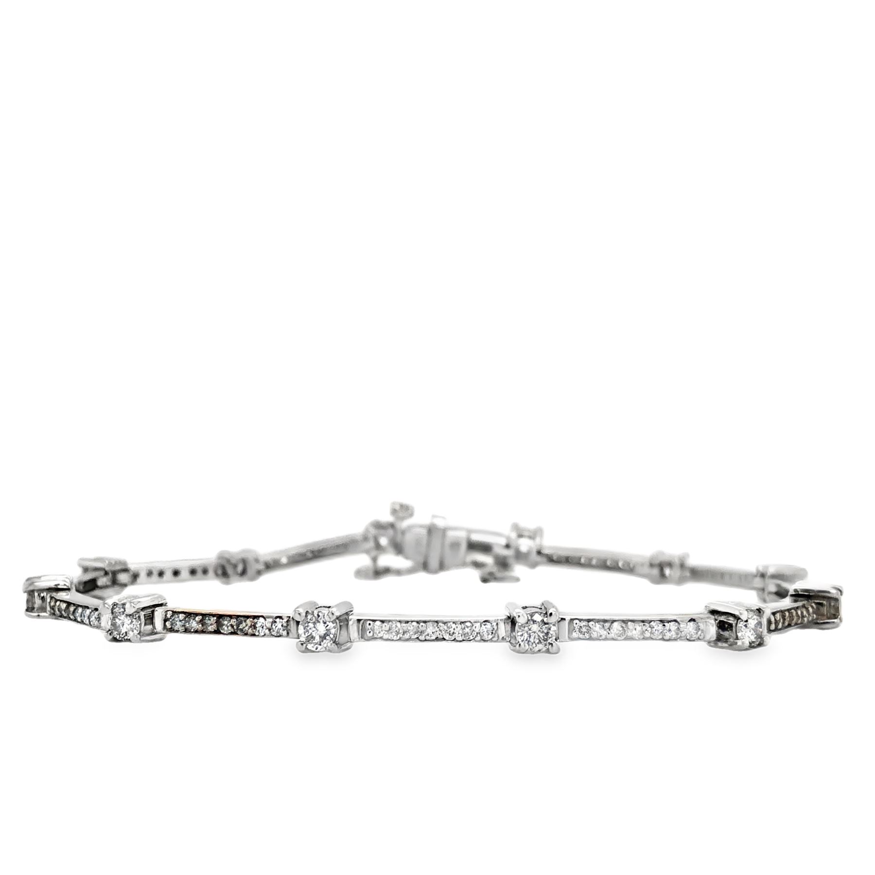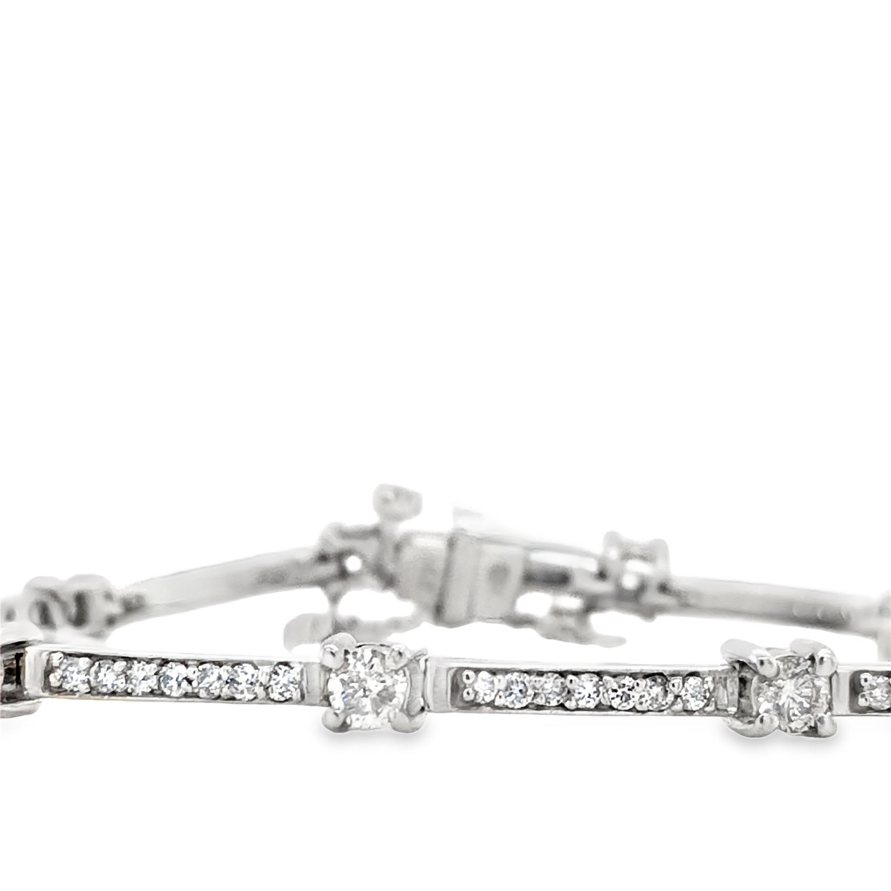 DESCRIPTION DETAIL: A diamond line bracelet with long links of (7) round, brilliant-cut diamonds each followed by a single round, brilliant-cut 3.0mm diamond.& nbsp;