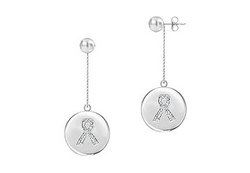 Spreading awareness these disc is engraved with breast cancer ribbon & is encrusted with brilliant-cut diamonds. Made in 14K white gold chain attached on gold balls these earrings have a total weight (TDW) of 0.33 ct.