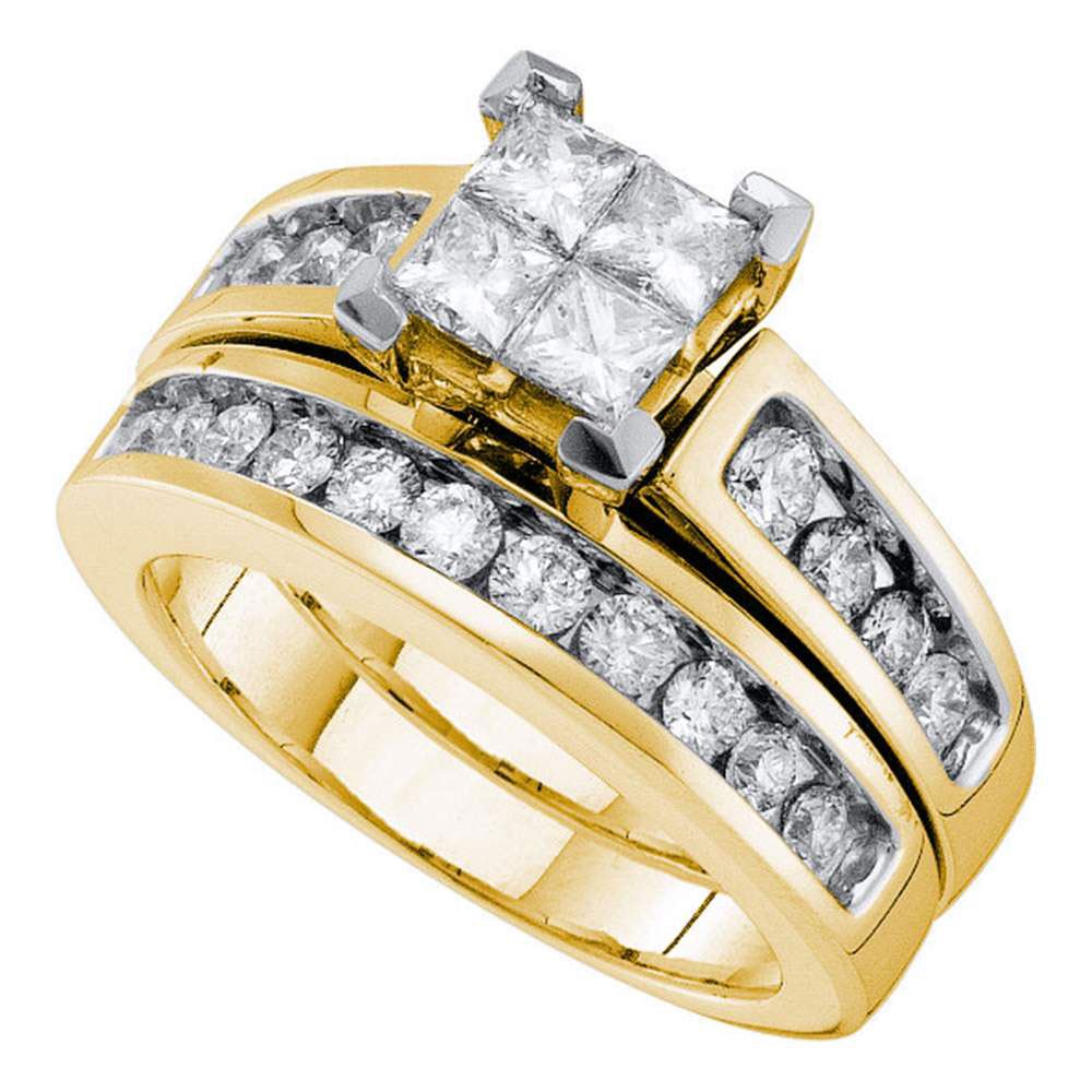 REF-180G9M - SKU: GD44407 ---- Diamond Bridal Wedding Engagement Ring Band Set 1-1/2 Cttw 14kt Yellow Gold