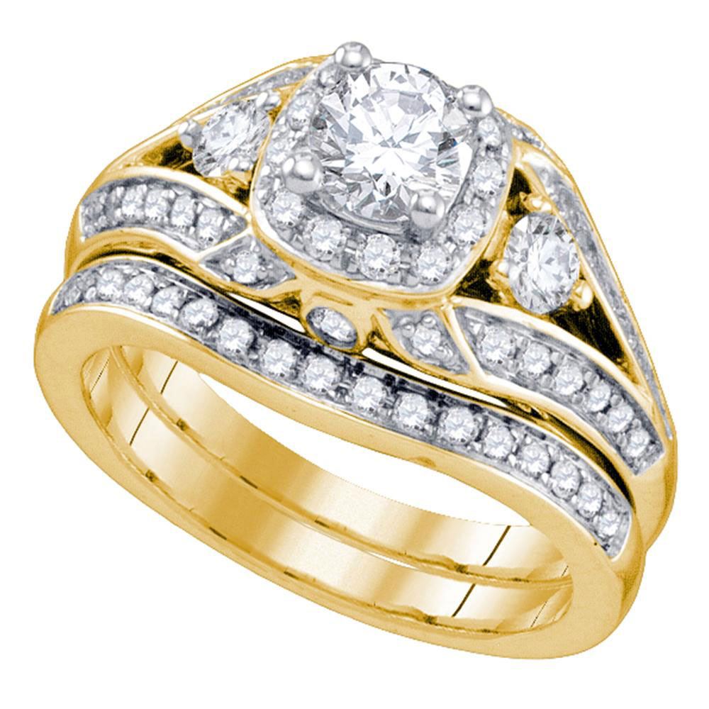 REF-317K3R - SKU: GD75422 ---- Diamond Bridal Wedding Engagement Ring Band Set 1-1/2 Cttw 14kt Yellow Gold