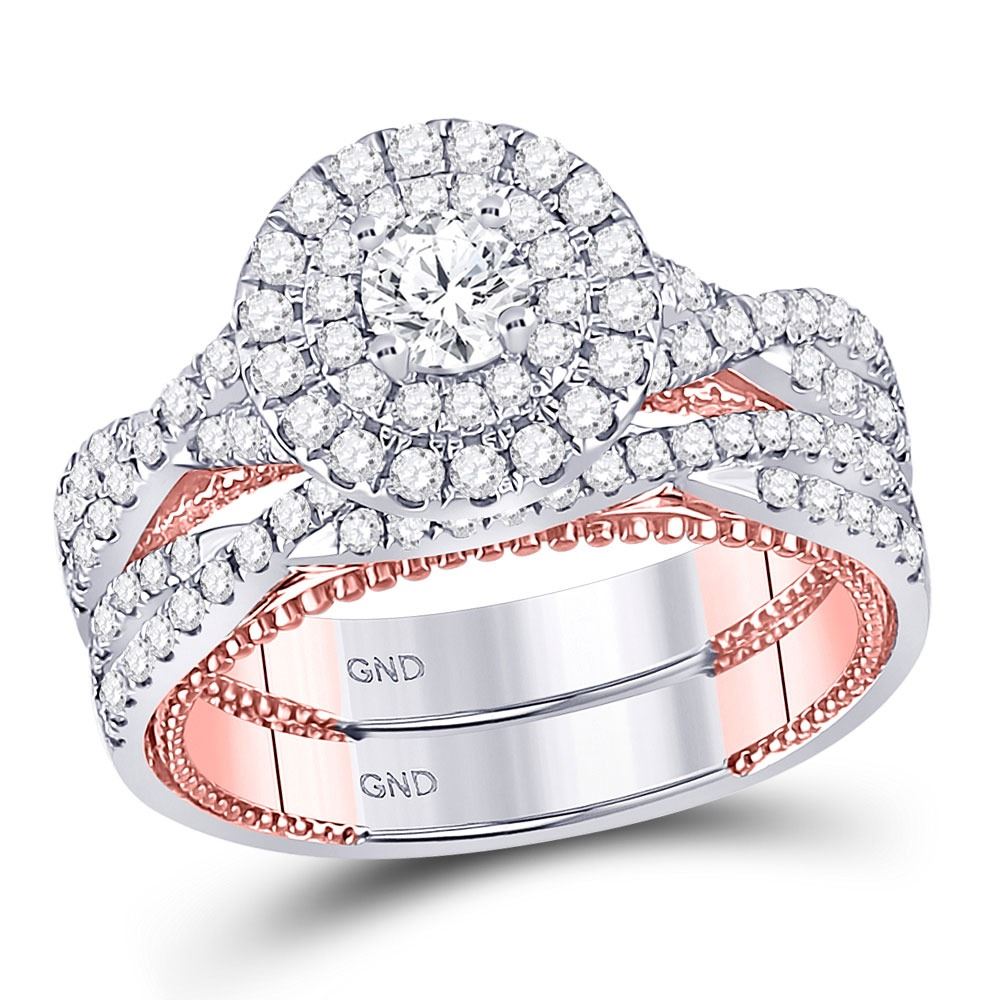 REF-163W6H - SKU: GD149620 ---- Diamond Bridal Wedding Engagement Ring Band Set 1-3/8 Cttw 14kt Two-tone Gold