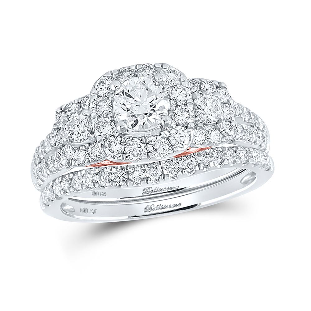 14kt Two-tone Gold Round Diamond Bridal Wedding Ring Band Set 1-1/2 Cttw.