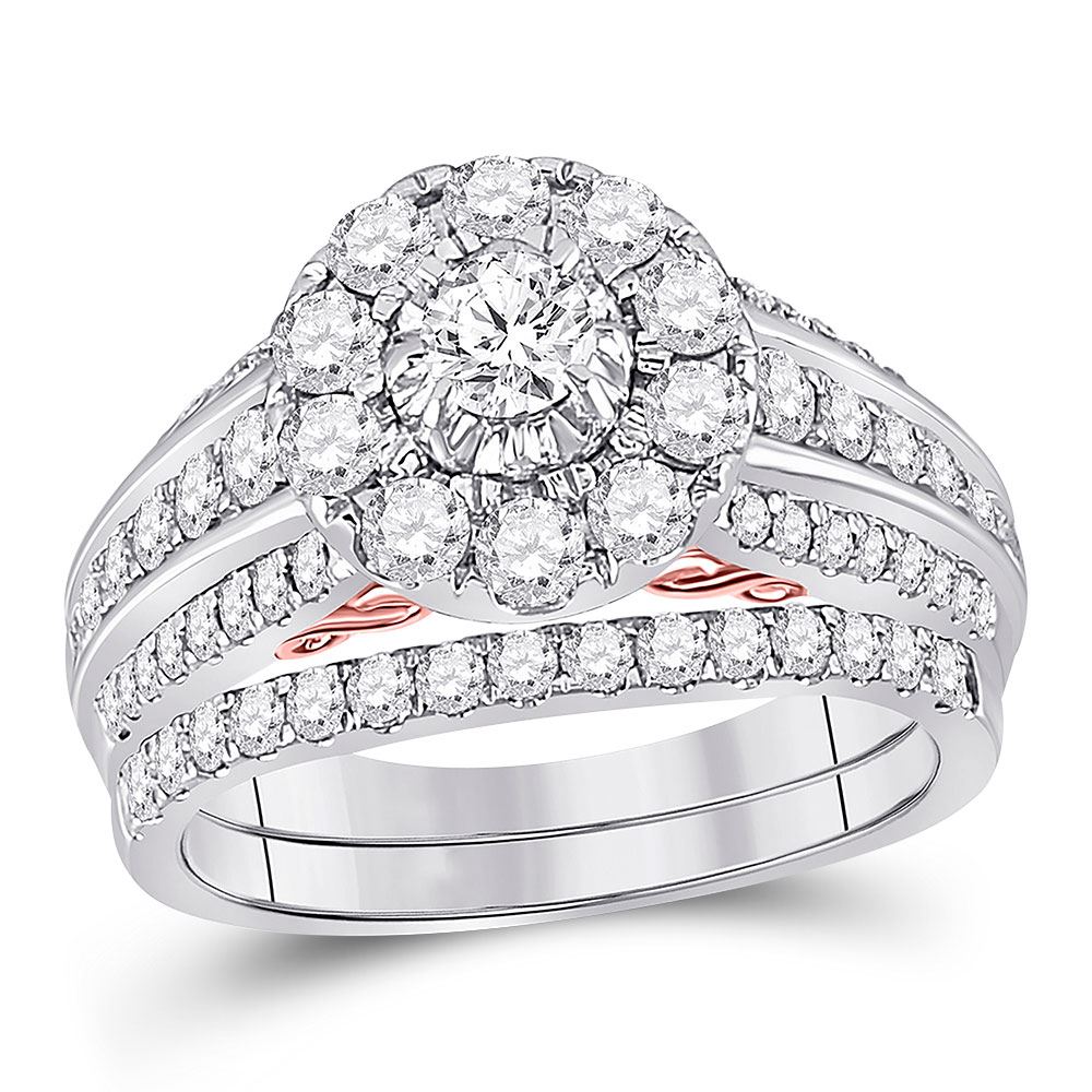 14kt Two-tone Gold Round Diamond Bridal Wedding Ring Band Set 1-1/2 Cttw.