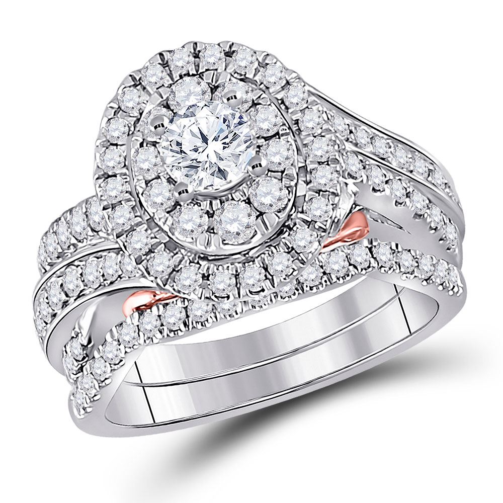 14kt Two-tone Gold Round Diamond Bridal Wedding Ring Band Set 1-1/2 Cttw
