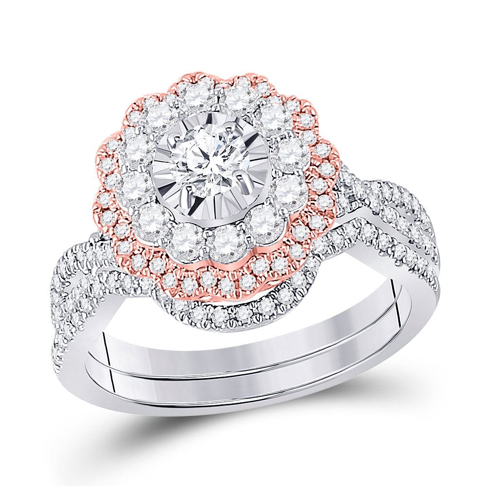 Diamond Bridal Wedding Ring Band Set 1-1/4 Cttw 14KT Two-tone Gold