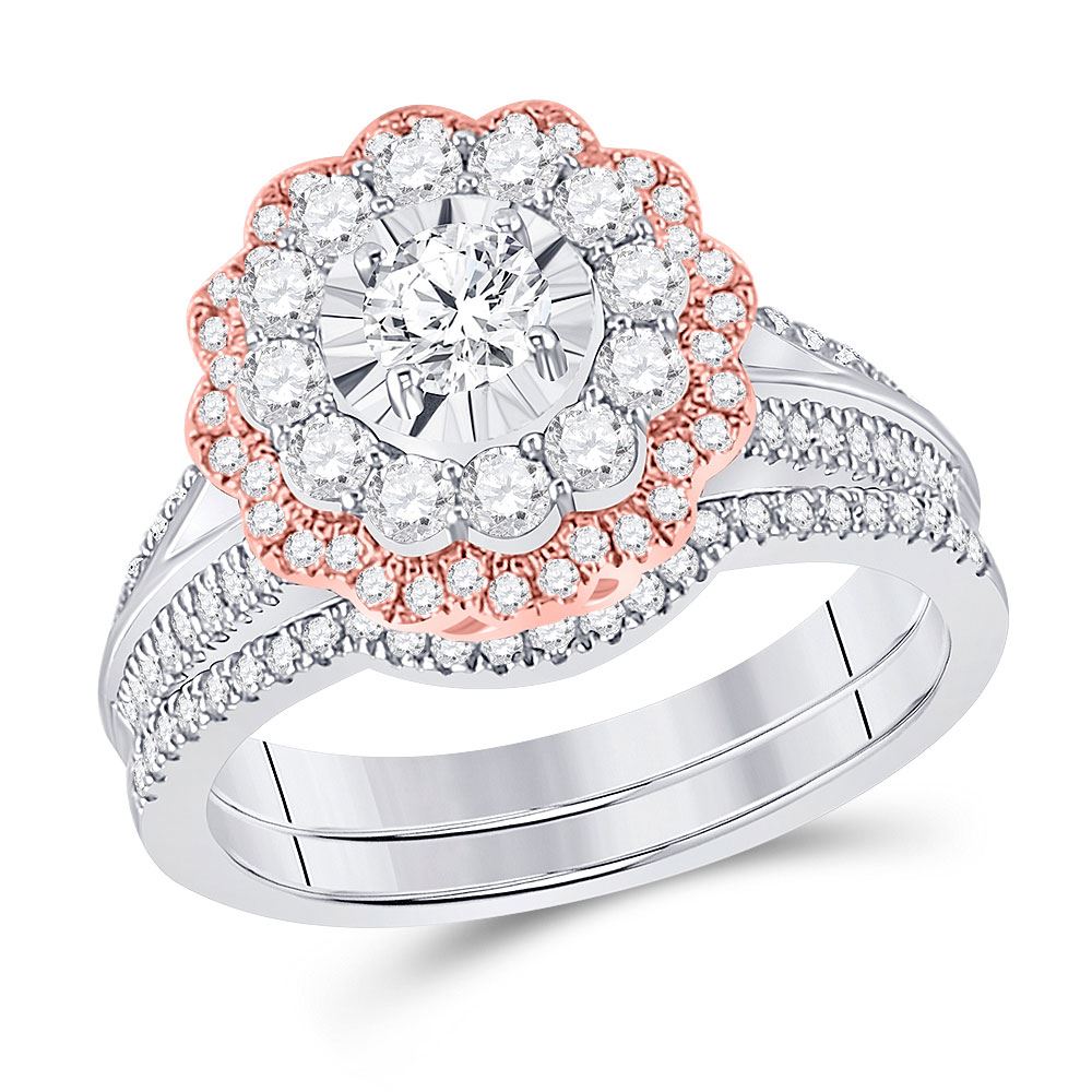 14kt Two-tone Gold Round Diamond Bridal Wedding Ring Band Set 1-1/5 Cttw