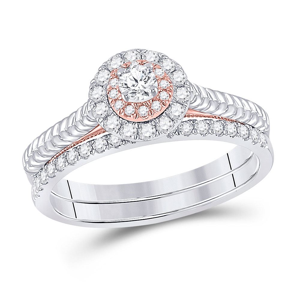 10kt Two-tone Gold Round Diamond Bridal Wedding Ring Band Set 1/2 Cttw