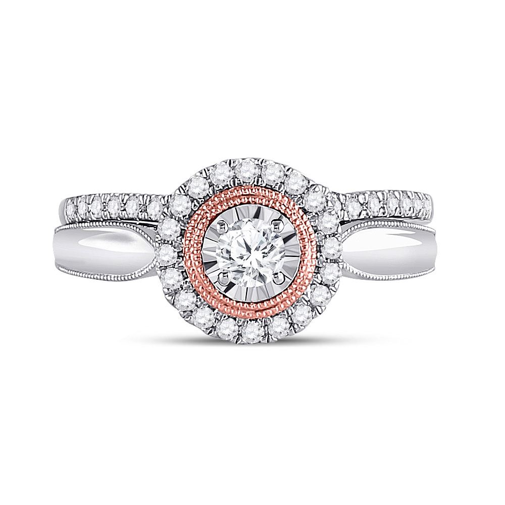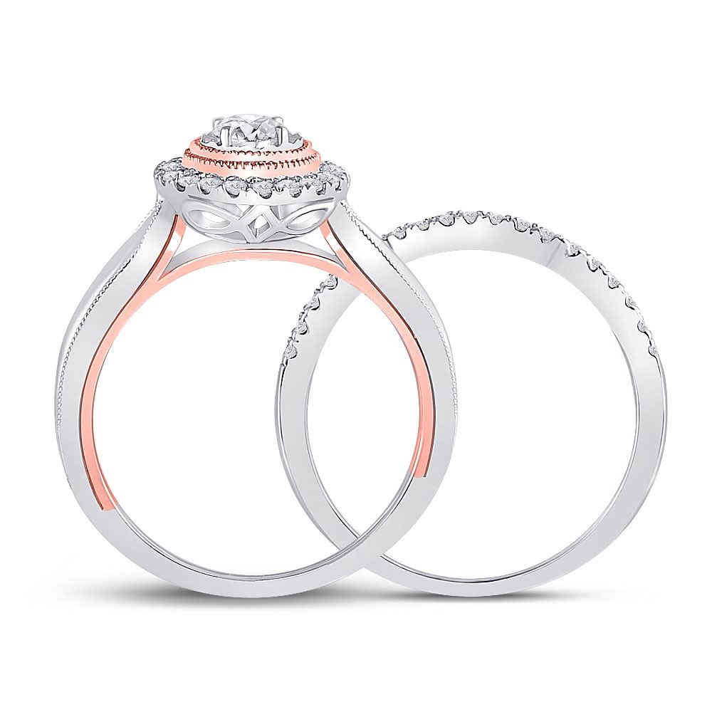 10kt Two-tone Gold Round Diamond Bridal Wedding Ring Band Set 1/2 Cttw