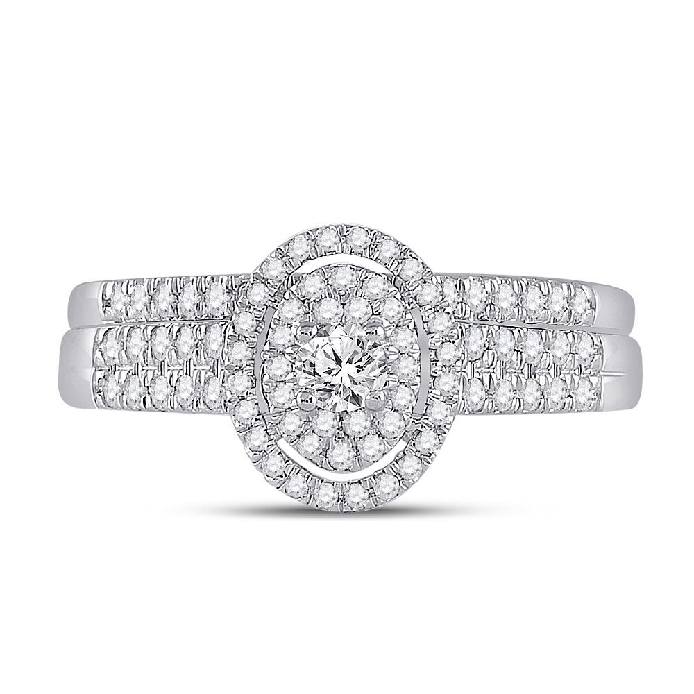 10kt White Gold Round Diamond Bridal Wedding Ring Band Set 1/2 Cttw