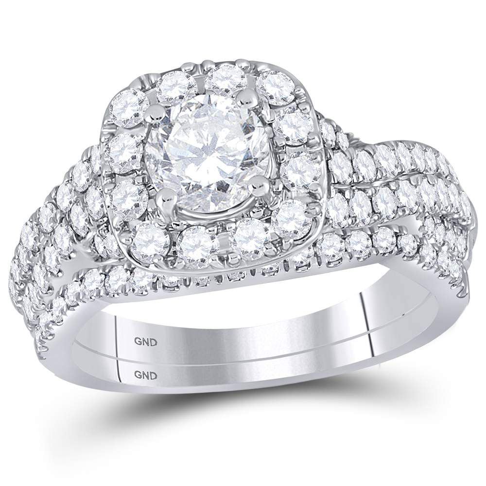 14kt Two-tone Gold Round Diamond Bridal Wedding Ring Band Set 1-3/4 Cttw.