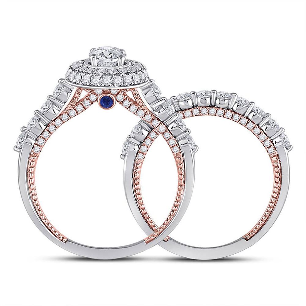 14kt Two-tone Gold Round Diamond Bridal Wedding Ring Band Set 1-3/4 Cttw