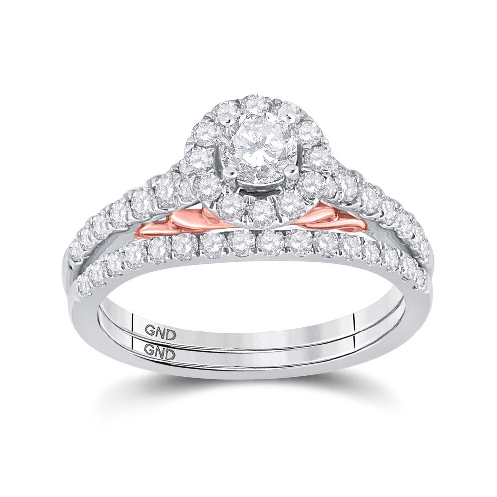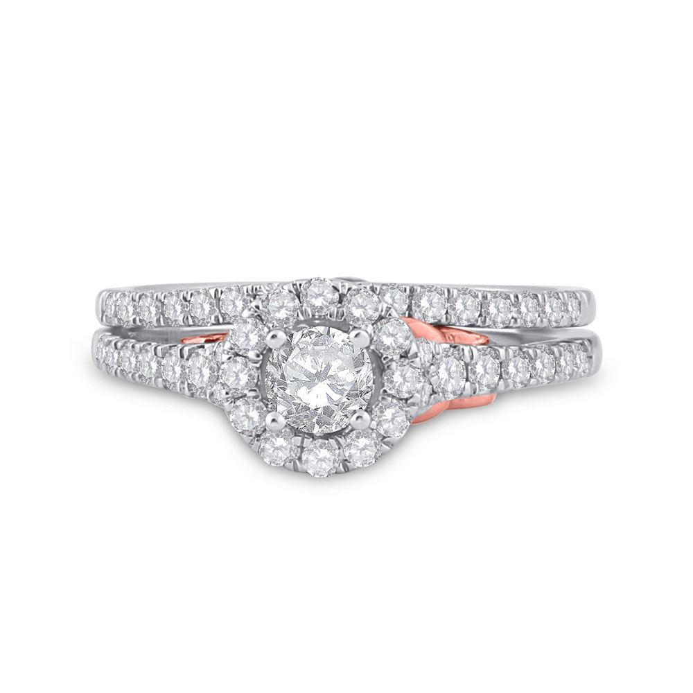 Diamond Bridal Wedding Ring Band Set 1 Cttw 14KT Two-tone Gold