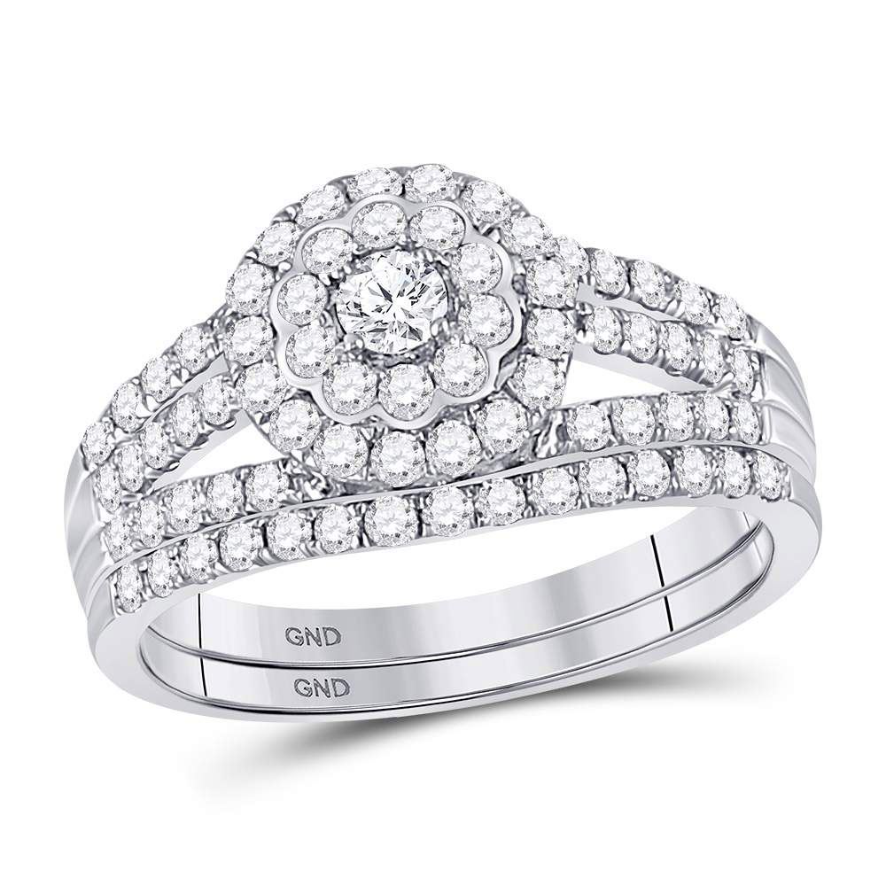 14kt White Gold Round Diamond Bridal Wedding Ring Band Set 1 Cttw.