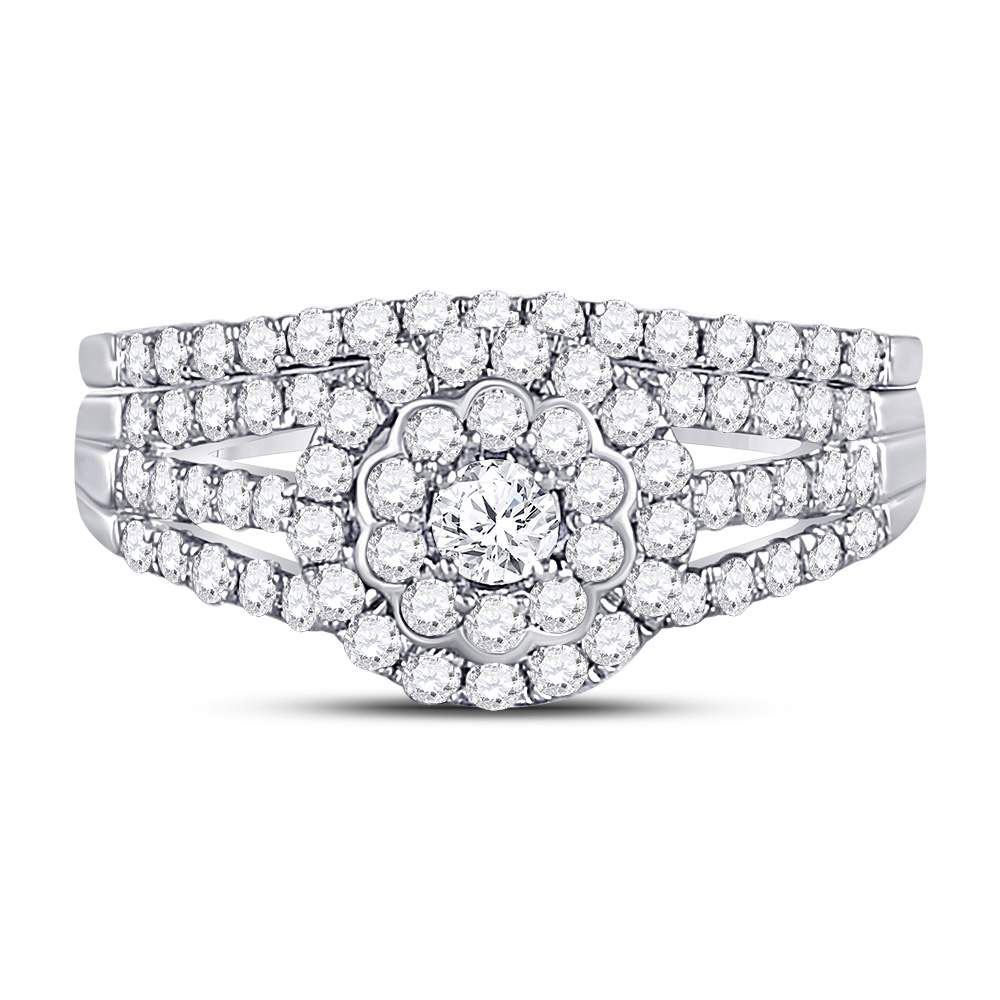 Diamond Bridal Wedding Ring Band Set 1 Cttw 14KT White Gold