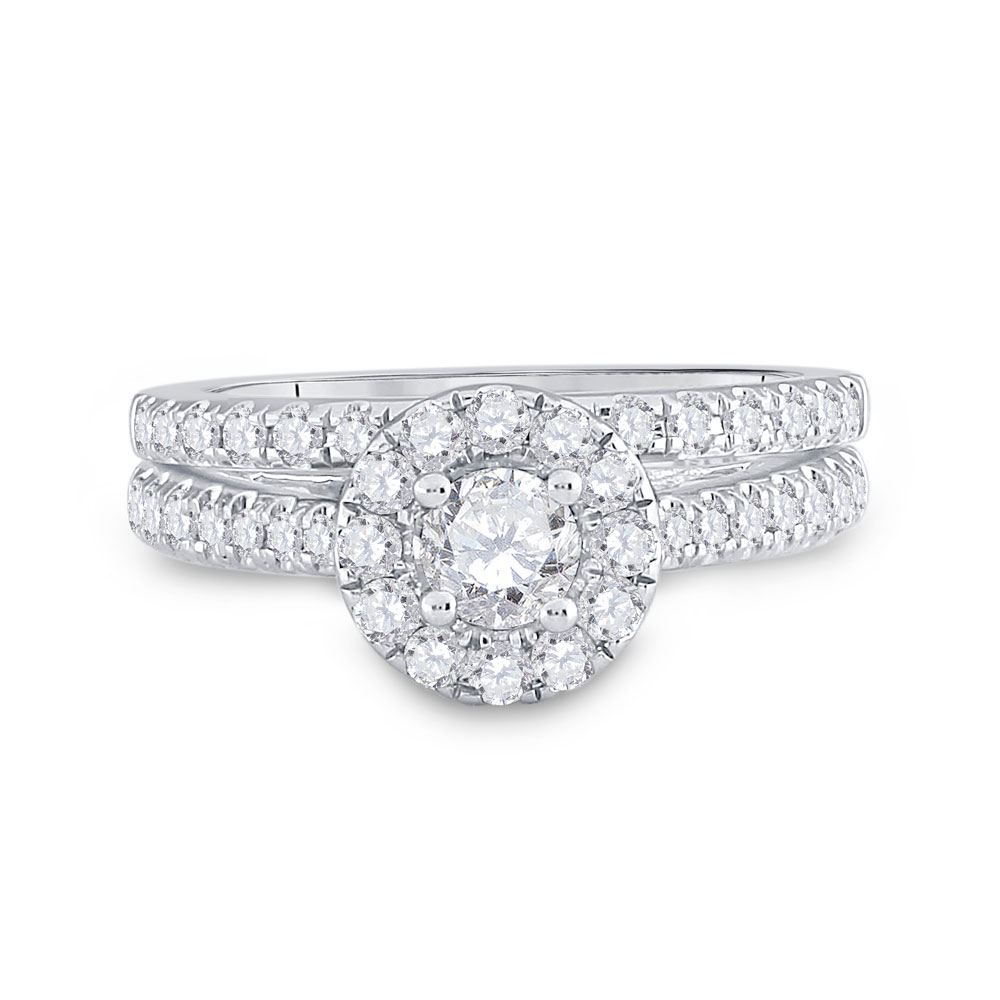Diamond Bridal Wedding Ring Band Set 1 Cttw 14KT White Gold