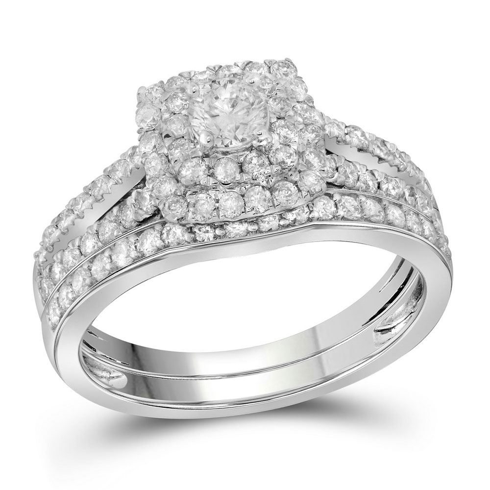 Diamond Bridal Wedding Ring Band Set 1 Cttw 14KT White Gold