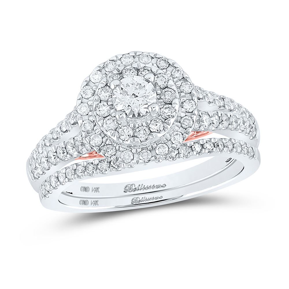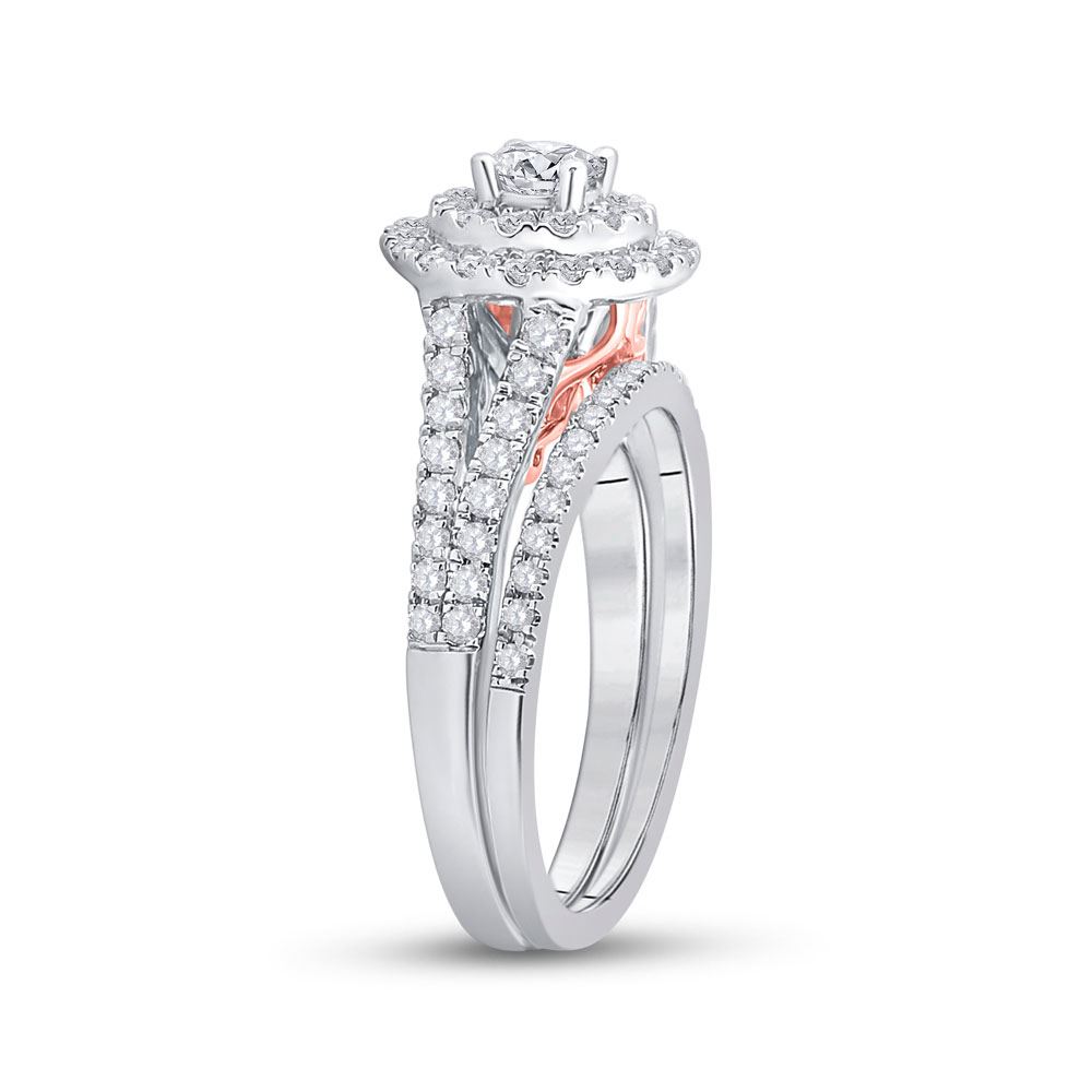 14kt Two-tone Gold Round Diamond Bridal Wedding Ring Band Set 1 Cttw