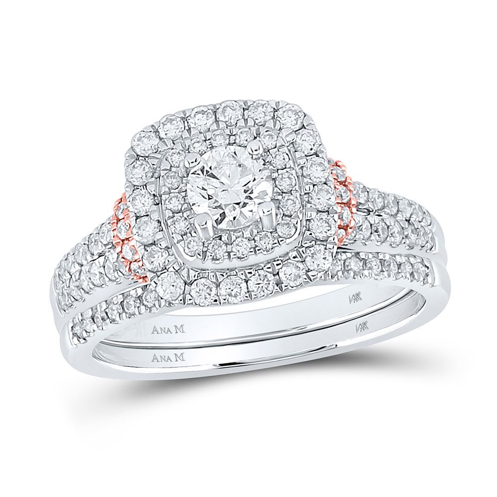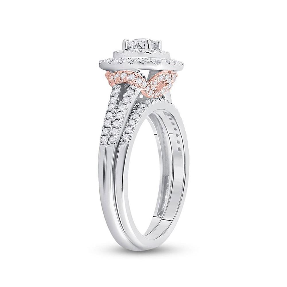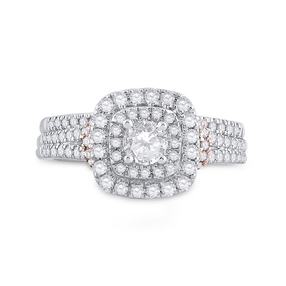 14kt Two-tone Gold Round Diamond Bridal Wedding Ring Band Set 1 Cttw