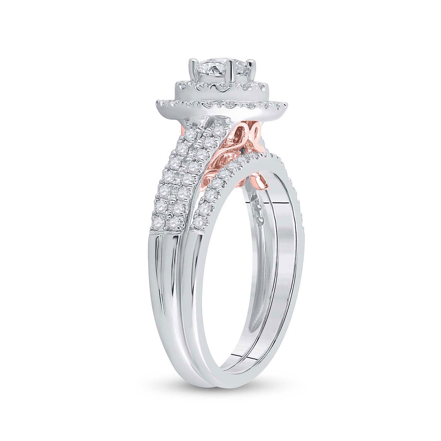 14kt Two-tone Gold Round Diamond Bridal Wedding Ring Band Set 1 Cttw