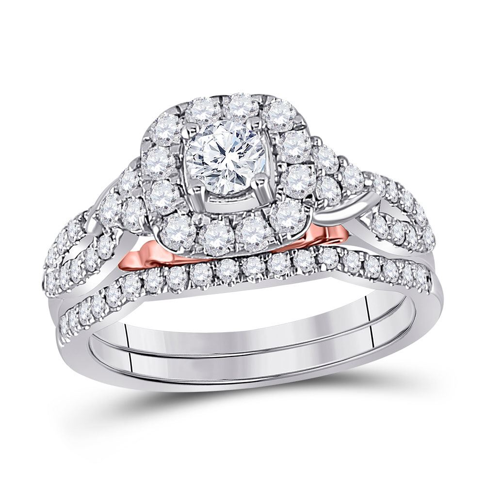 14kt Two-tone Gold Round Diamond Bridal Wedding Ring Band Set 1 Cttw