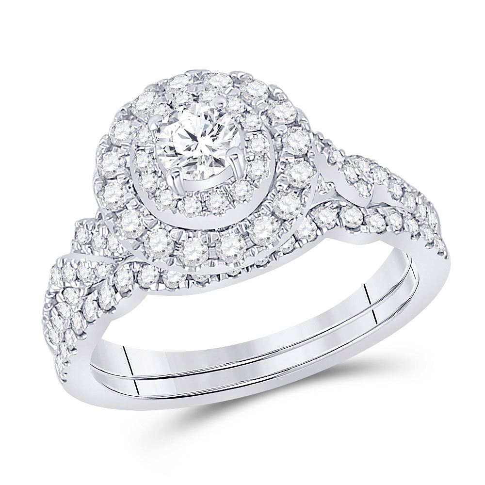 14kt White Gold Round Diamond Bridal Wedding Ring Band Set 1 Cttw