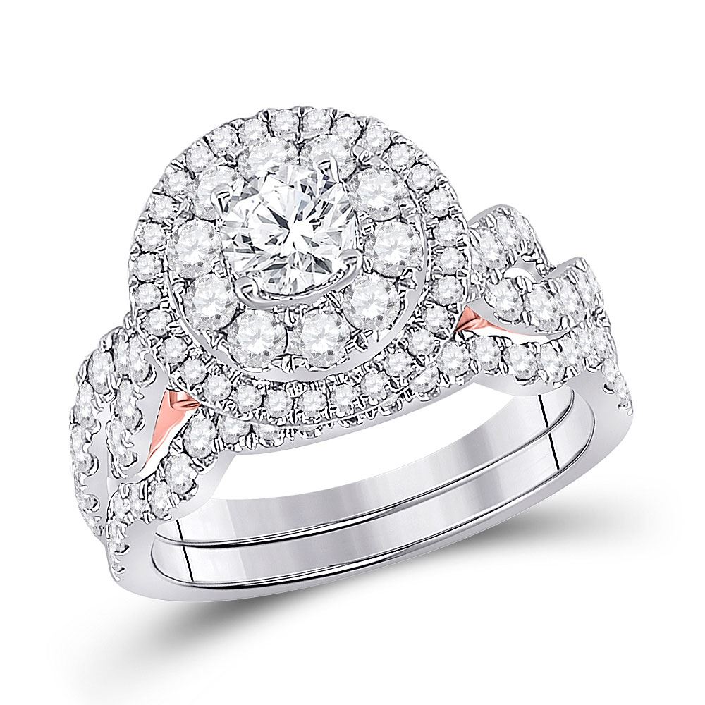 14kt Two-tone Gold Round Diamond Bridal Wedding Ring Band Set 2 Cttw