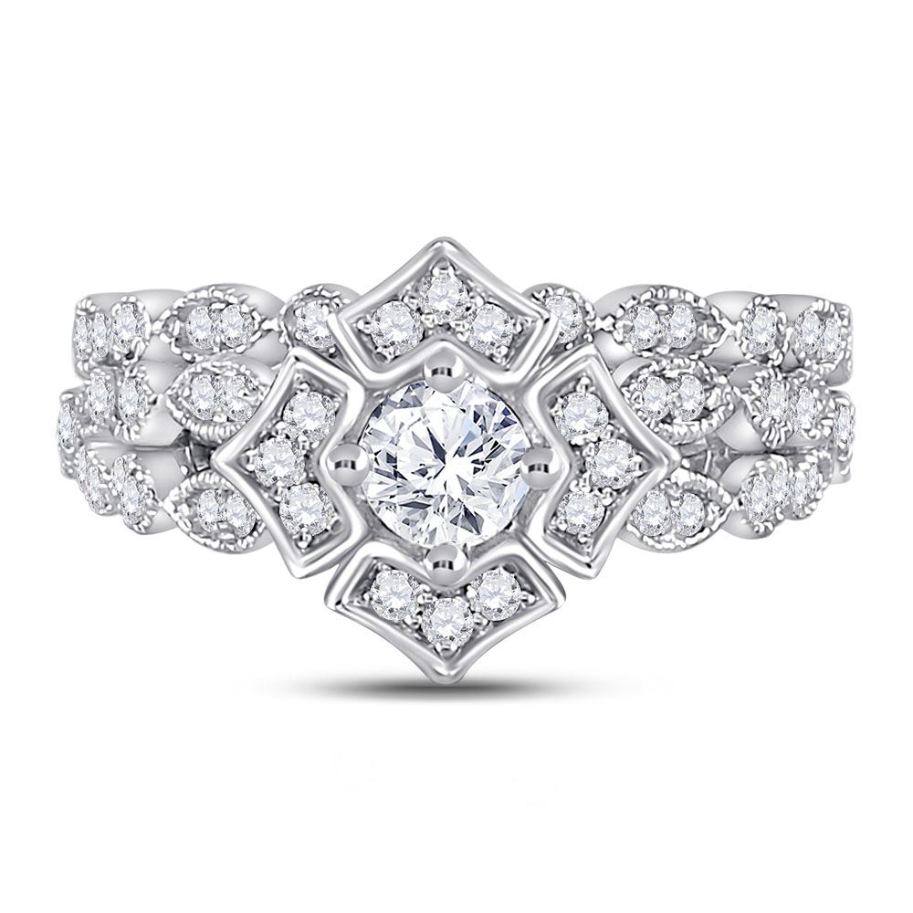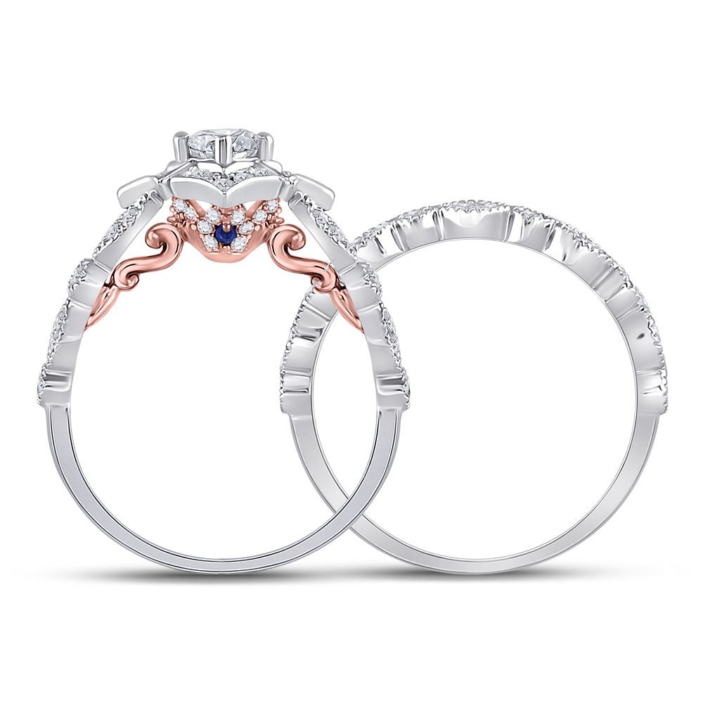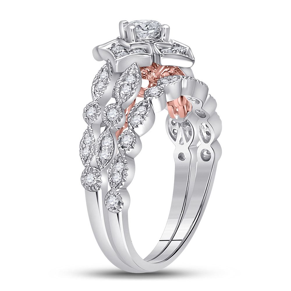 14kt Two-tone Gold Round Diamond Bridal Wedding Ring Band Set 3/4 Cttw
