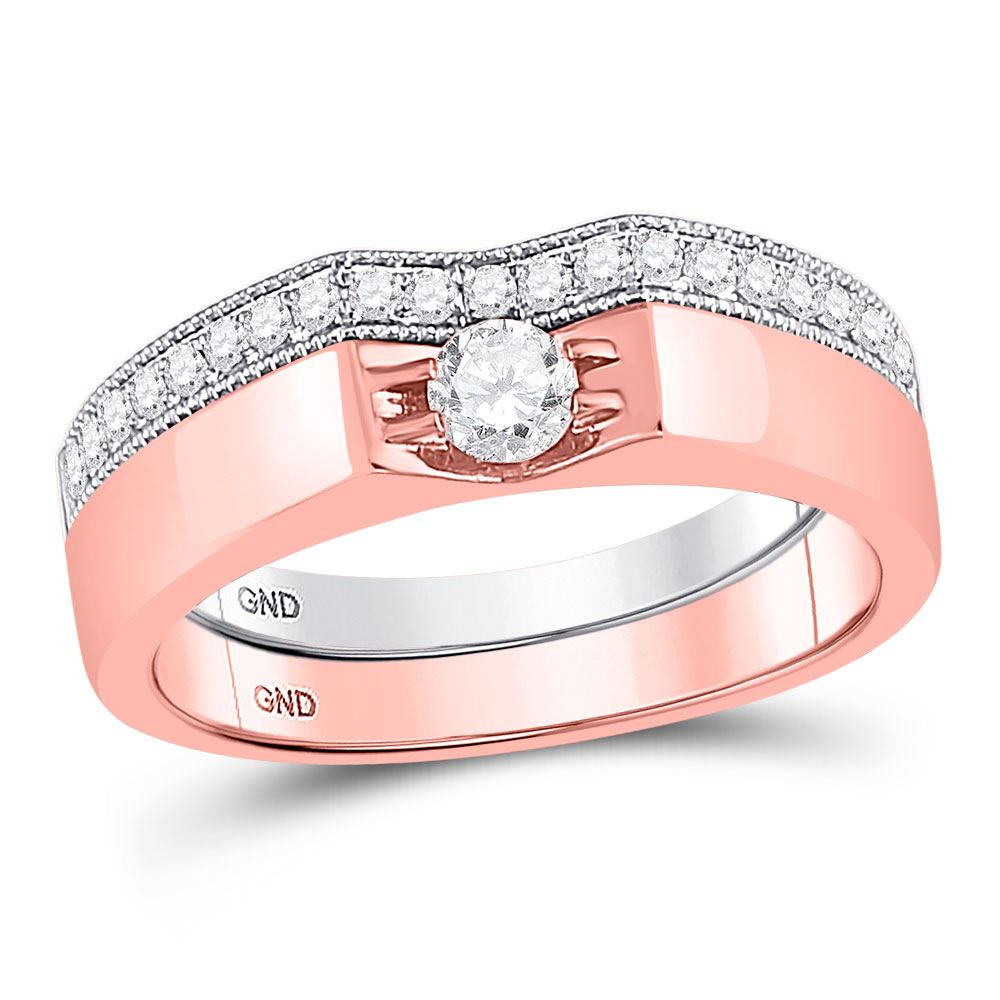 14kt Two-tone Gold Round Diamond Bridal Wedding Ring Band Set 3/8 Cttw