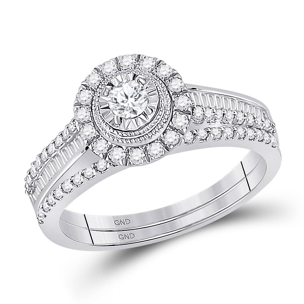 10kt White Gold Round Diamond Bridal Wedding Ring Band Set 5/8 Cttw.