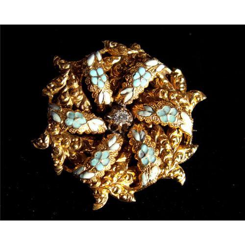 <tr><td>Title:Diamond Brooch Champlevé Enamel Art Nouveau </td></tr>