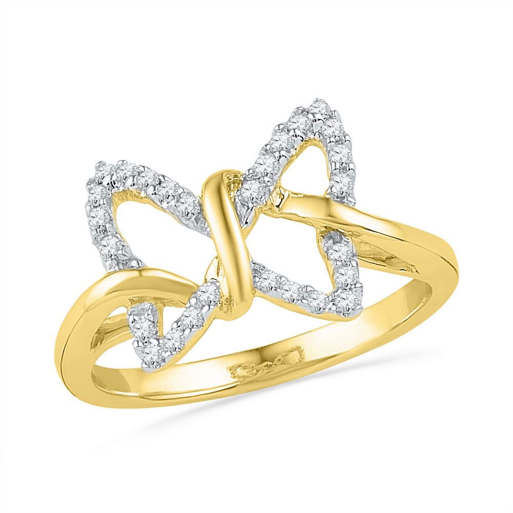 REF-18X2Y - SKU: GD101317 ---- Diamond Butterfly Bug Daily-wear Right-hand Ring 1/6 Cttw 10k Yellow Gold