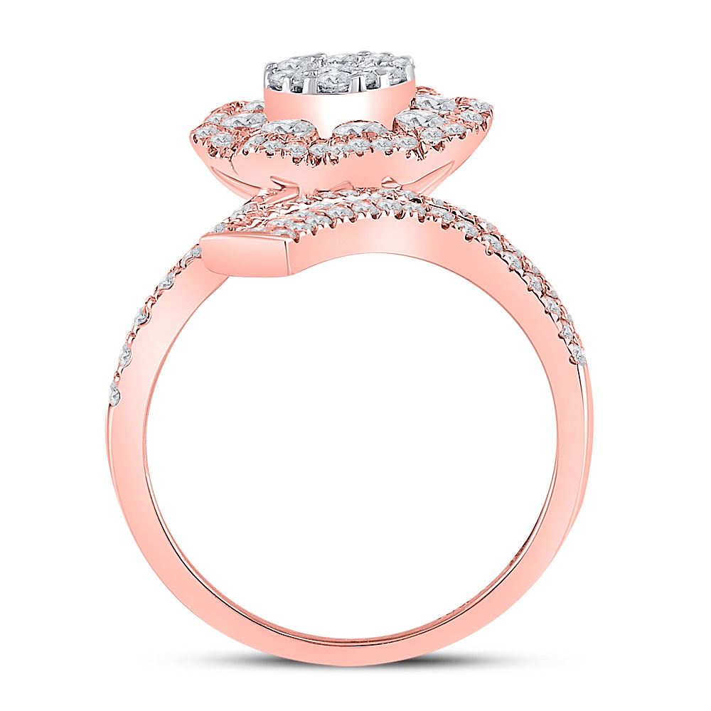 14kt Rose Gold Womens Round Diamond Bypass Flower Cluster Ring 1-1/2 Cttw