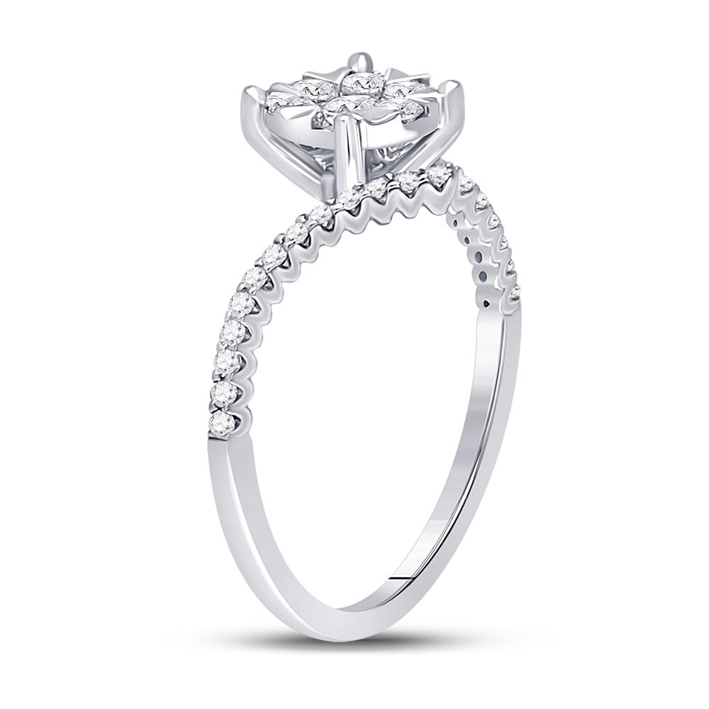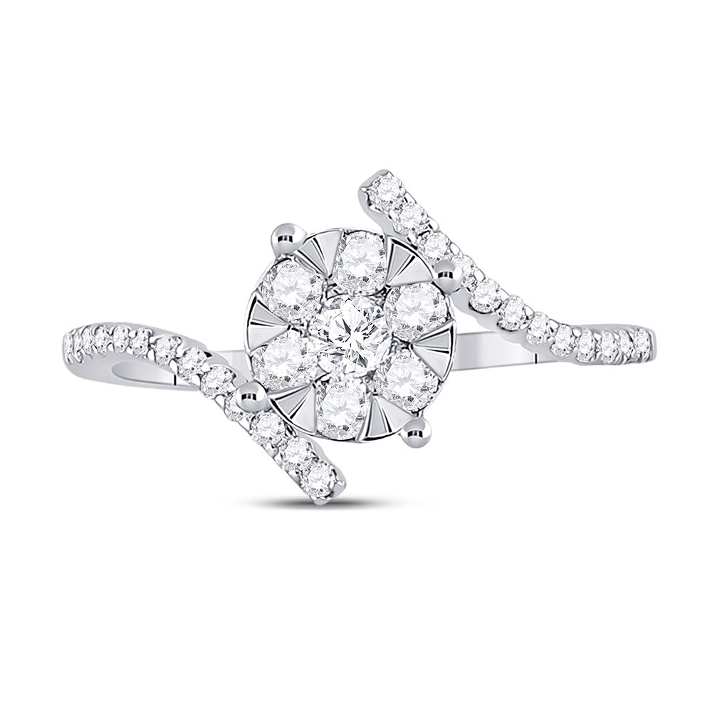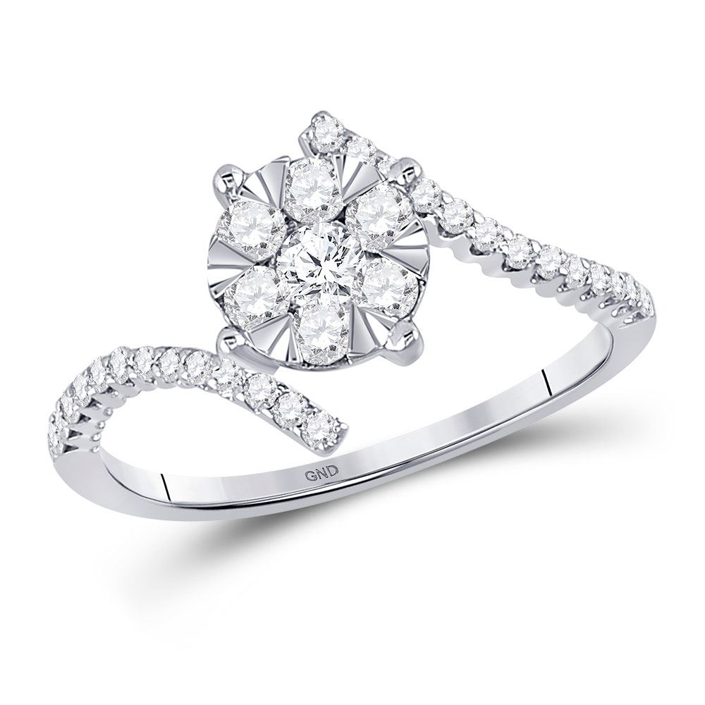 10kt White Gold Womens Round Diamond Bypass Flower Cluster Ring 1/2 Cttw